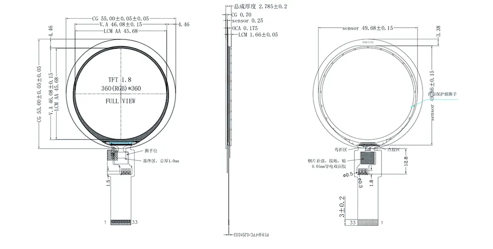 | พื้นที่ใช้งาน | 45.68(ส) *45.68(วี) | แตะไดร์เวอร์ IC | CST816D |