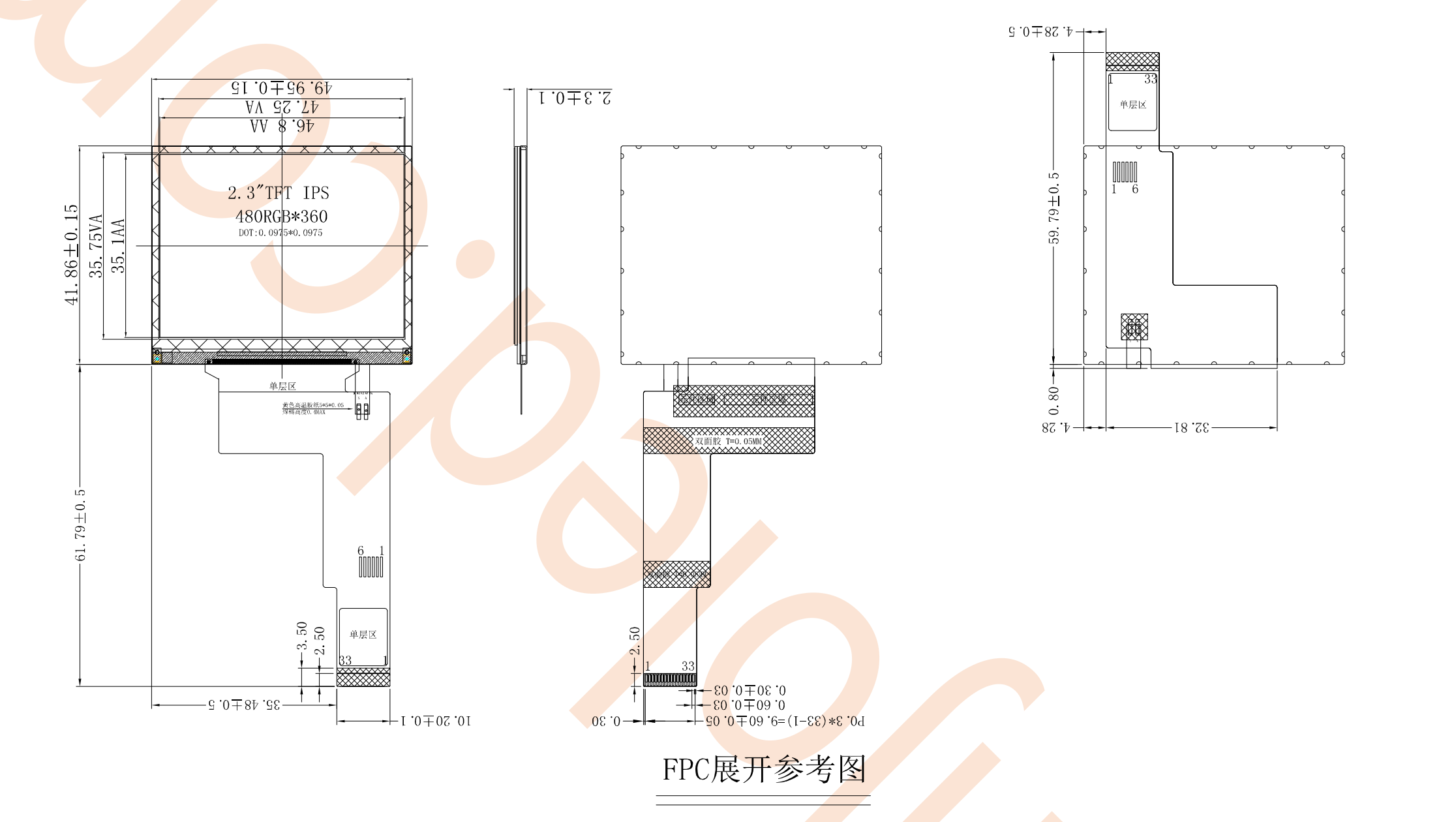 | โครงร่างมิติ | 49.95×41.86×2.3 | ไฟ LED แบ็คไลท์ | 6 ชิ้น |