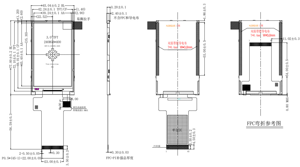 รายการ พารามิเตอร์ ขนาด 3.0 นิ้ว (แนวทแยง) ประเภทแผง IPS ความละเอียด 240 (RGB) * 400 (หรือที่รู้จักกันทั่วไปในชื่อ WQVGA) ประเภทอินเทอร์เฟซ อินเทอร์เฟซ SPI และอินเทอร์เฟซ MCU สถานะการจ่ายไฟ อุปทานระยะยาว